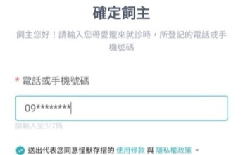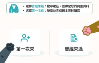 曾經來過→填寫電話號碼→確認動物資料→完成綁定
